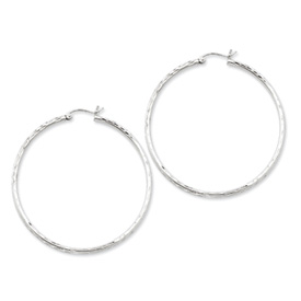Sterling Silver 2mm Diamond Cut Hoop Earrings