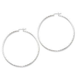 Sterling Silver 2mm Diamond Cut Hoop Earrings
