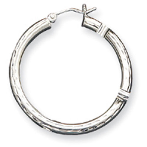 Sterling Silver 3.00mm Diamond-Cut Hoop Earrings