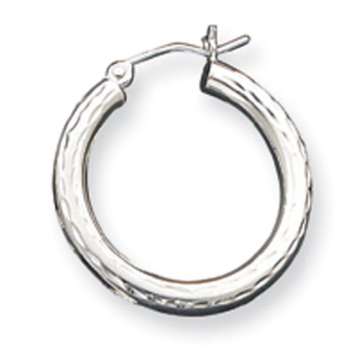 Sterling Silver 3.00mm Diamond-Cut Hoop Earrings