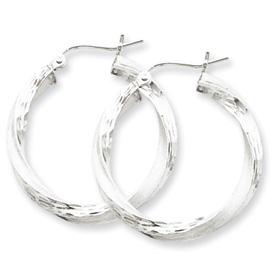 Picture of Sterling Silver 3.00mm Polished & Satin Diamond Cut Twisted Hoop Earrings
