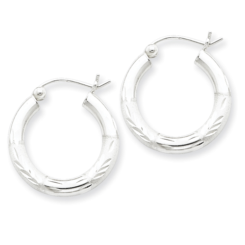 Sterling Silver 3.00mm Satin Diamond-cut Hoop Earrings