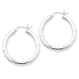 Sterling Silver 3.00mm Satin Diamond Cut Hoop Earrings