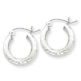 Sterling Silver 3.00mm Satin Diamond Cut Hoop Earrings