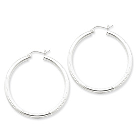 Sterling Silver 3.00mm Satin Diamond Cut Hoop Earrings