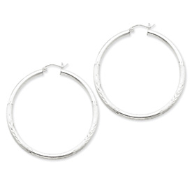 Sterling Silver 3.00mm Satin Diamond-cut Hoop Earrings