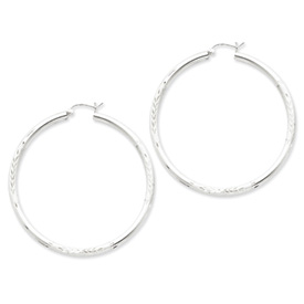 Sterling Silver 3.00mm Satin Diamond-cut Hoop Earrings