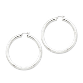 Sterling Silver 5.00mm Polished & Satin Diamond Cut Hoop Earrings