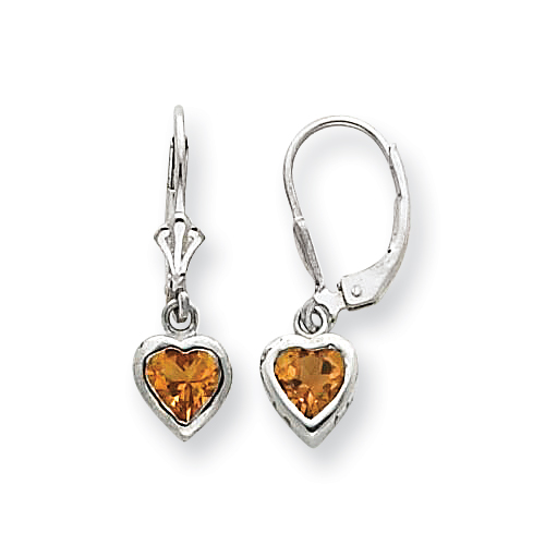 Sterling Silver 5mm Heart Citrine Leverback Earrings