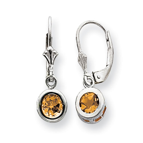 Sterling Silver 6mm Round Citrine Leverback Earrings