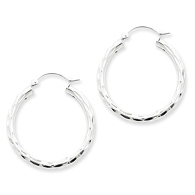 Sterling Silver Diamond-Cut Satin Polished Hoop Earrings