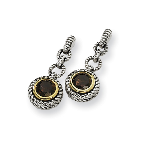 Picture of Sterling Silver/Gold-plated Accent Smokey Quartz Antiqued Post Earrings