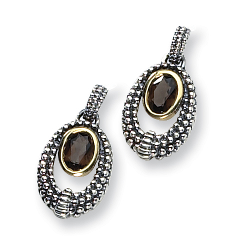 Sterling Silver/Gold-plated Smokey Quartz Antiqued Post Earrings