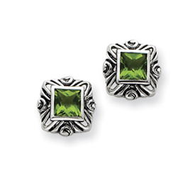 Sterling Silver Green Cubic Zirconia Square Earrings
