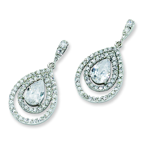 Picture of Sterling Silver Pear CZ Dangle Post Earrings