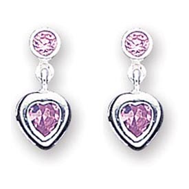 Picture of Sterling Silver Pink Heart  CZ Earrings