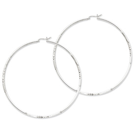 Sterling Silver Polished & Satin Diamond Cut Hoop Earrings