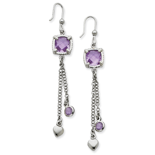 Sterling Silver Purple Crystal & Purple Swarovski Dangle Earrings