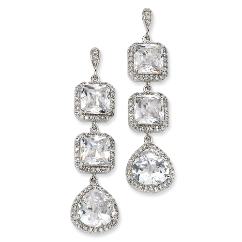 Picture of Sterling Silver Rose-cut CZ Dangle Post Earrings