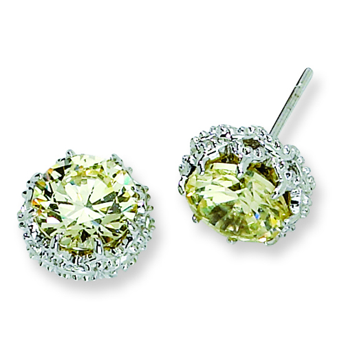 Picture of Sterling Silver Round Canary CZ Post Earrings