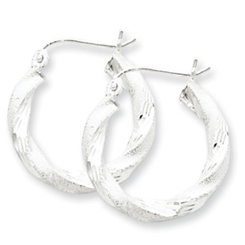 Sterling Silver Satin Finished Diamond Cut Twisted Hoop Earrings
