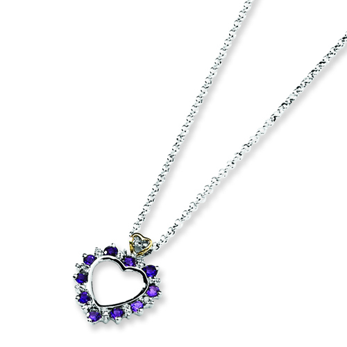 Sterling Silver & 14K Gold Amethyst & Diamond Necklace
