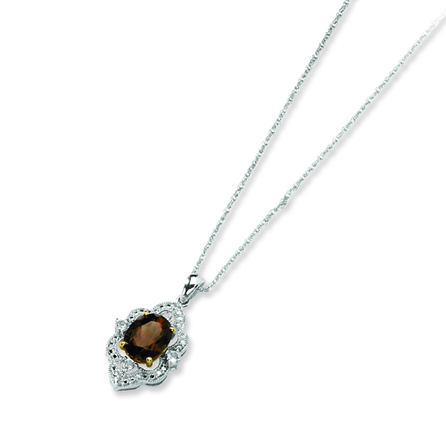Picture of Sterling Silver & 14K Gold Smokey Quartz And White Topaz And Diamond Necklace