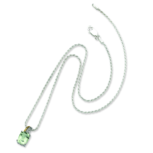 Picture of Sterling Silver & 14K Green Amethyst and Diamond Necklace