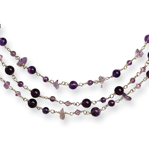 Picture of Sterling Silver 3 Strand Amethyst/Lilac Crystal Necklace chain