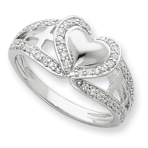 Sterling Silver And Cubic Zirconia Polished Pure Heart Ring