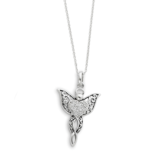 Sterling Silver Antiqued Angel Of Blessing 18" Necklace