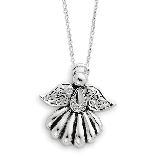 Sterling Silver Antiqued Angel Of Remembrance 18" Necklace