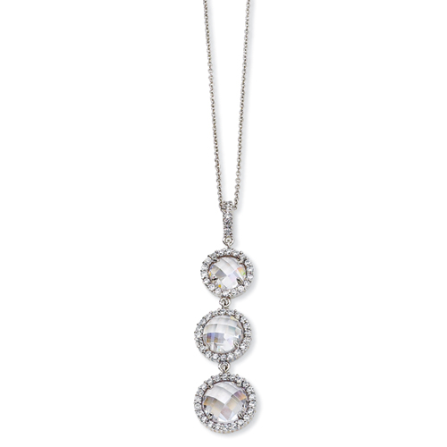 Sterling Silver Checker-cut CZ 3-stone 18in Necklace