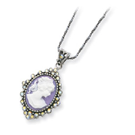 Picture of Sterling Silver Crystal Cameo Pendant With  16'' Chain