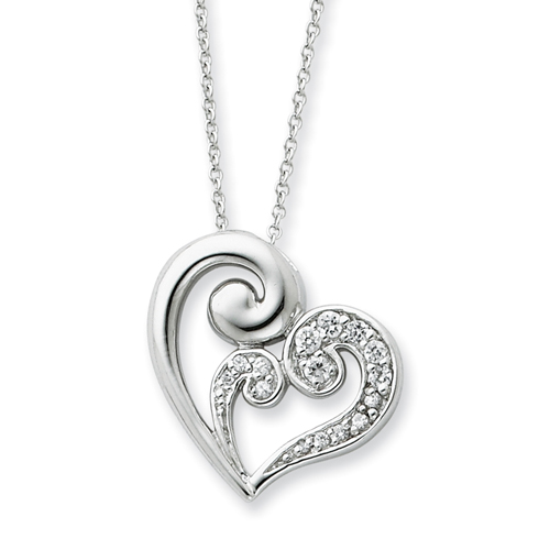 Sterling Silver & Cubic Zirconia A Mothers Journey 18" Heart Necklace