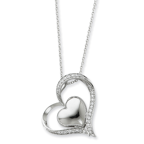 Sterling Silver & Cubic Zirconia In My Heart 18" Necklace