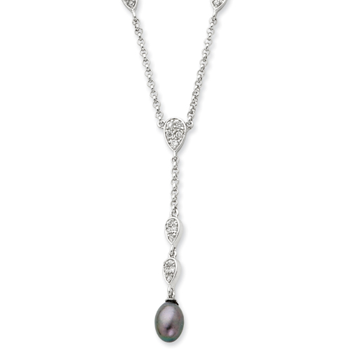 Sterling Silver CZ & Grey Freshwater Pearl Necklace chain