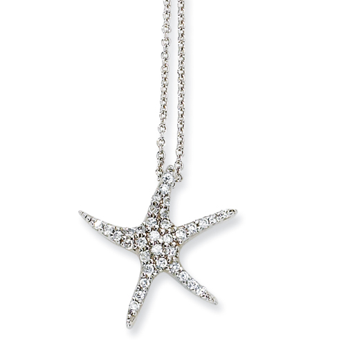 Sterling Silver CZ Starfish 18in Necklace chain