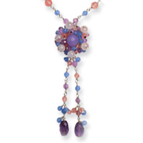 Sterling Silver Double Strand Lavender, Cherry, Blue, Amethyst Necklace