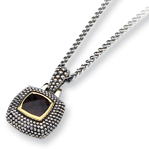 Sterling Silver/Gold-plated Antiqued Garnet 18in Necklace