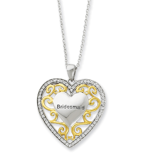 Sterling Silver & Gold-plated Cubic Zirconia Bridesmaid 18" Heart Necklace