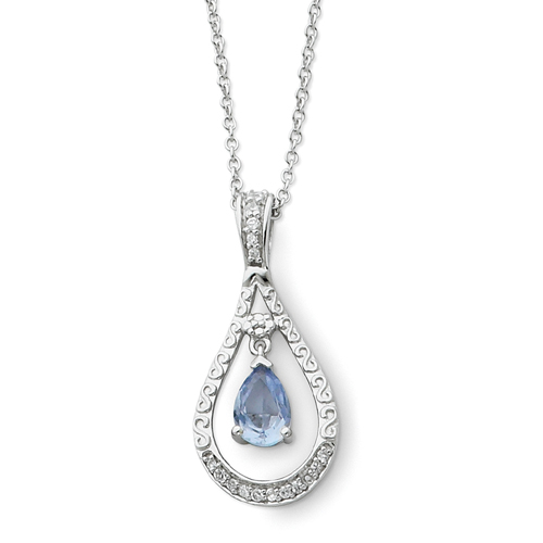 Sterling Silver March Cubic Zirconia Stone Never Forget Tear 18" Birthstone Necklace