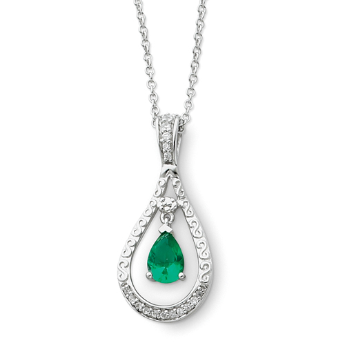 Sterling Silver May Cubic Zirconia Stone Never Forget Tear 18" Birthstone Necklace