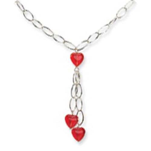 Sterling Silver Red Crystal Heart Fancy Link Necklace