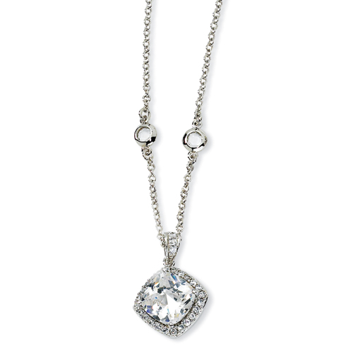 Sterling Silver Rose-cut CZ Square 18in Necklace chain
