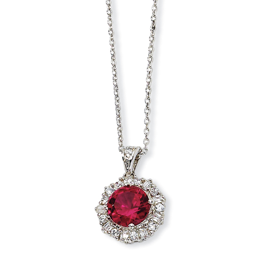 Sterling Silver Synthetic Ruby & CZ 18in Necklace