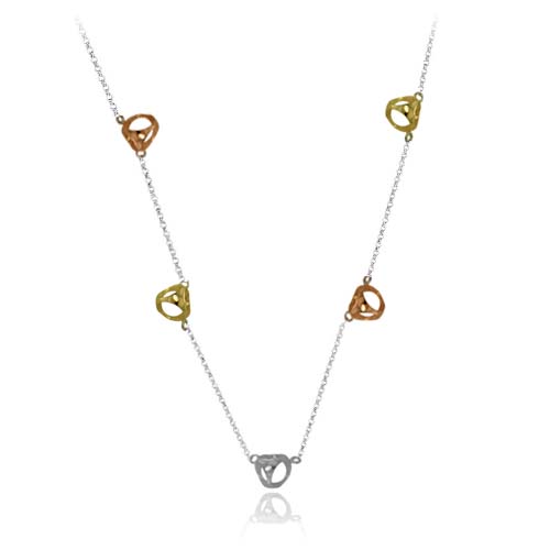 Sterling Silver Unique Shapes Tri-Color Necklace