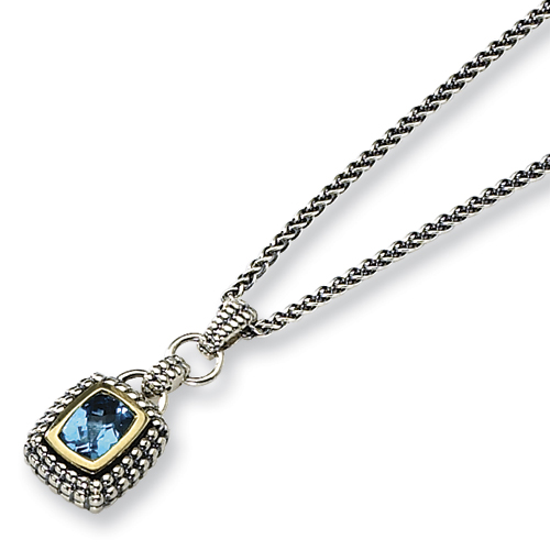 Sterling Silver w/14k Antiqued Blue Topaz 18in Necklace