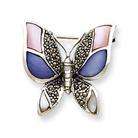 Picture of Sterling Silver Marcasite Mother of Pearl Butterfly Pin