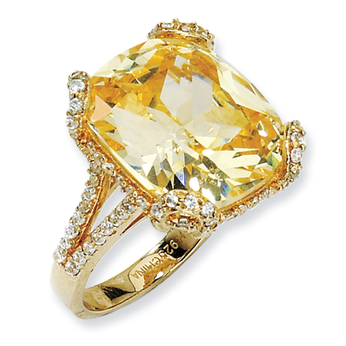Gold-plated Sterling Silver Champ/Wht CZ Ring